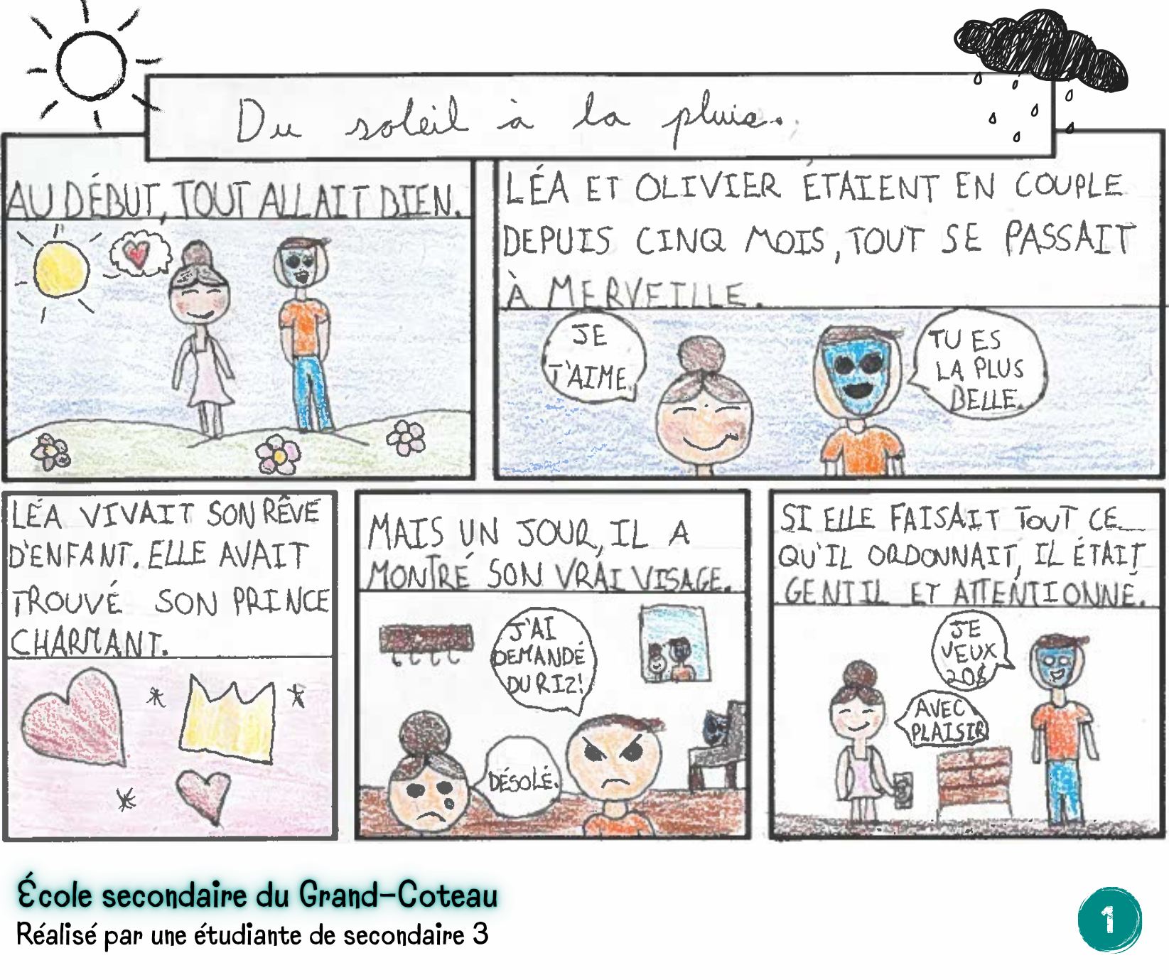 Un enseignant de l’école du Grand-Coteau, à Sainte-Julie, a choisi de sensibiliser ses élèves de secondaire trois à la violence conjugale à travers la création de bandes dessinées.