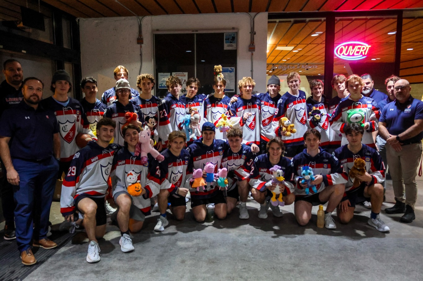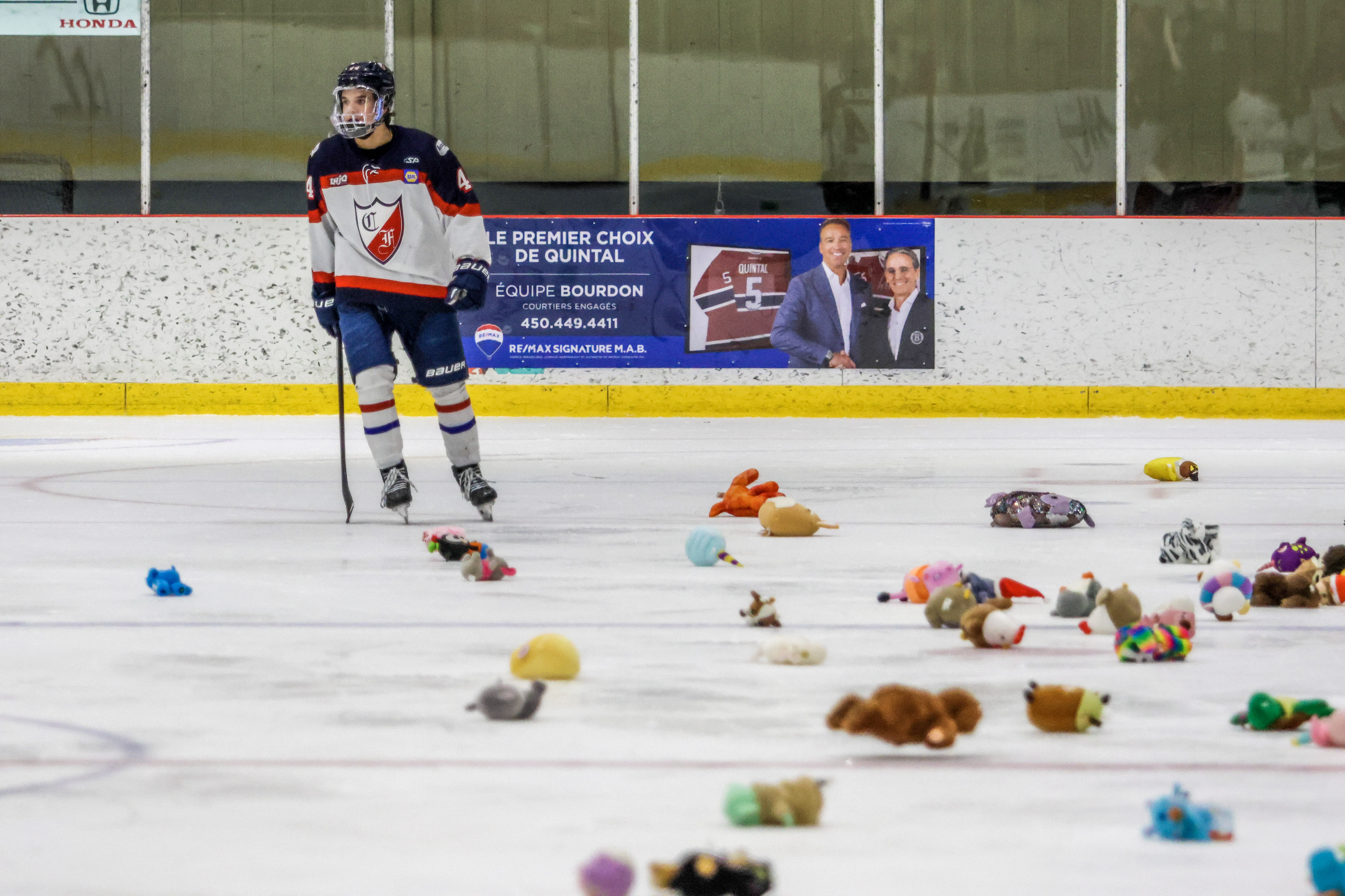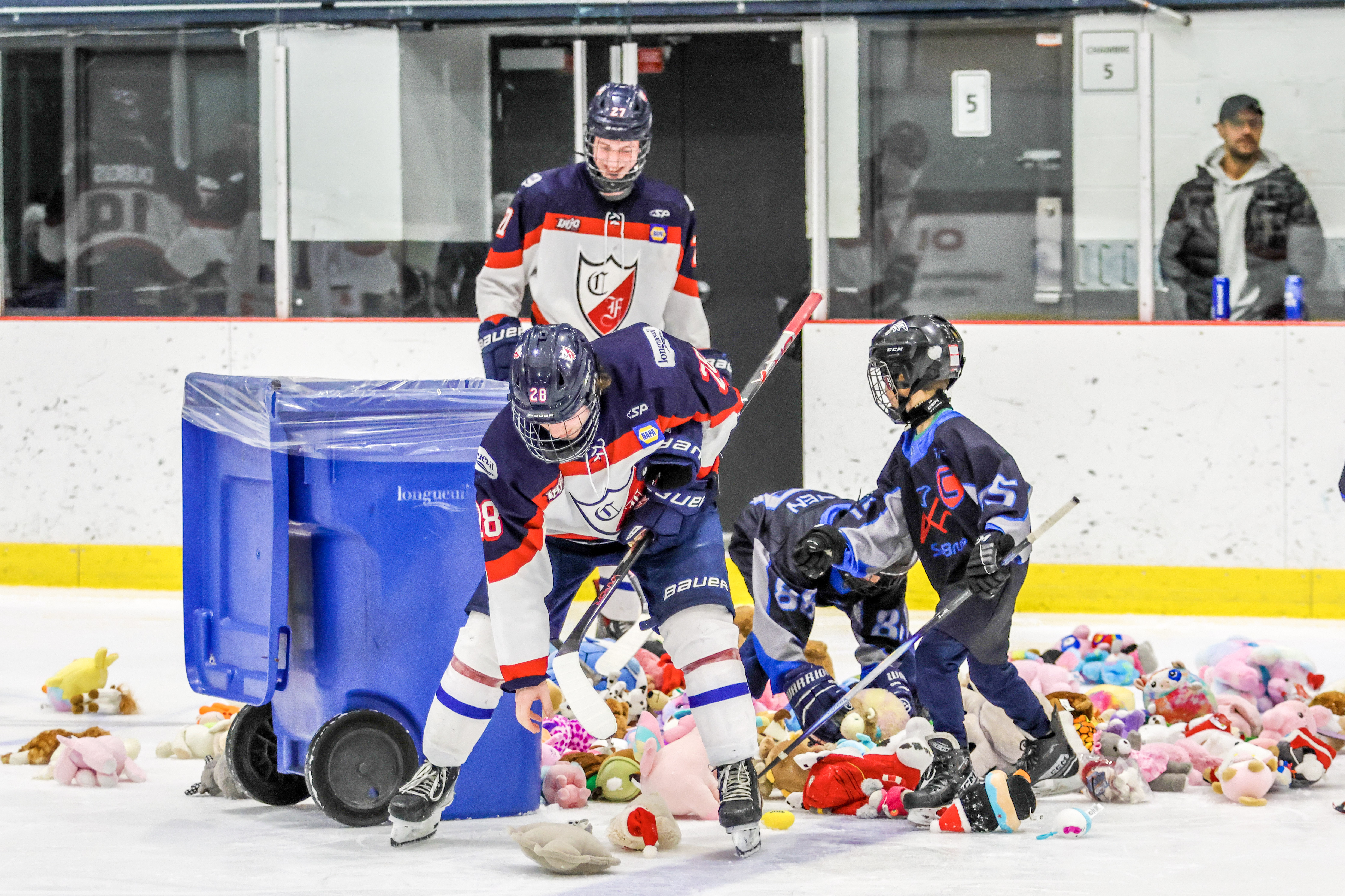 Le Collège Français de Longueuil a décroché la victoire par la marque de 5 à 3 contre ses plus proches poursuivants au classement, les Panthères de Saint-Jérôme. Ce choc des titans a rempli ses promesses sur le plan sportif, mais aussi par l'abondance de toutous s'étant retrouvés sur la glace.