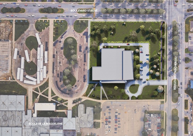 Cette demande, qui constitue la première étape dans l’avancement du projet, est également faite en collaboration avec le Centre de services scolaire des Grandes-Seigneuries (CSSDGS). Le complexe serait d'ailleurs situé sur un terrain appartenant au CSSDGS sur le boulevard Taschereau près de l'école secondaire de la Magdeleine à La Prairie.