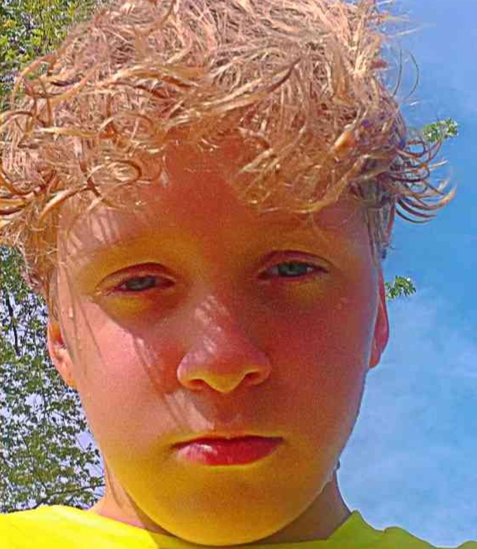 L'adolescent mesure 1,52 m (5 pi 1 po), a les cheveux blonds courts et les yeux bleus.